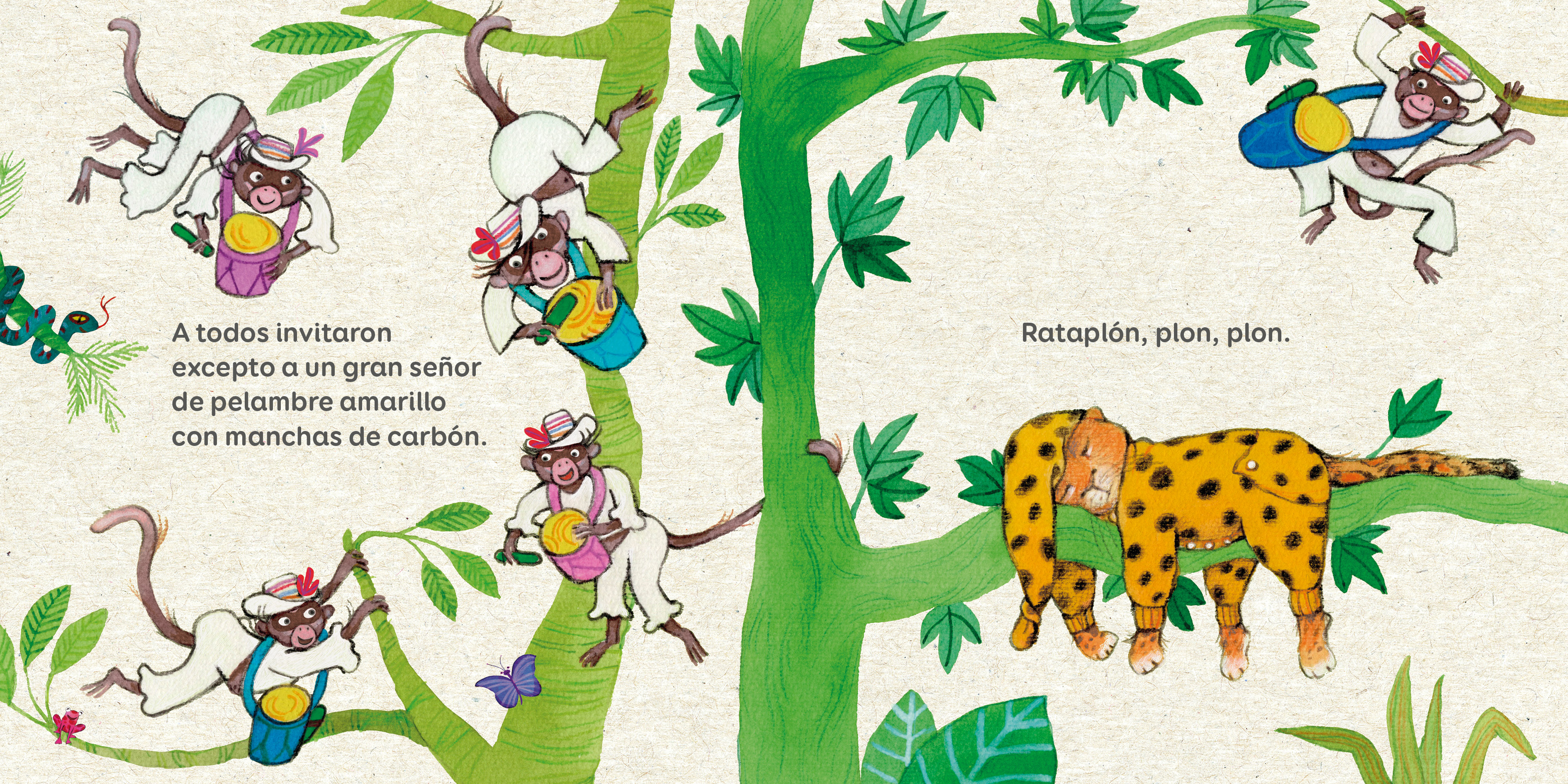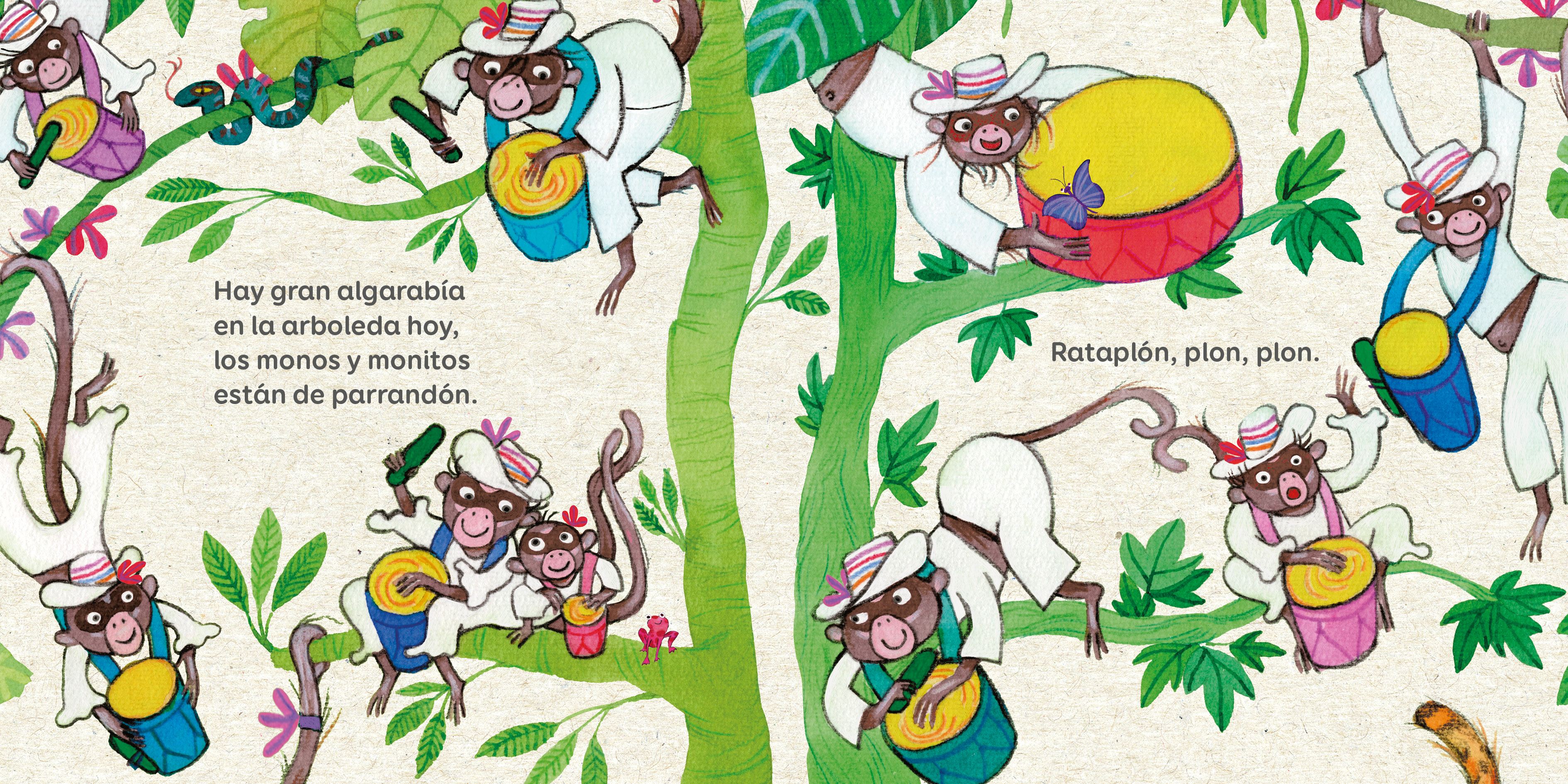 "Hay gran algarabía en la arboleda hoy, los monos y monitos están de parrandón."