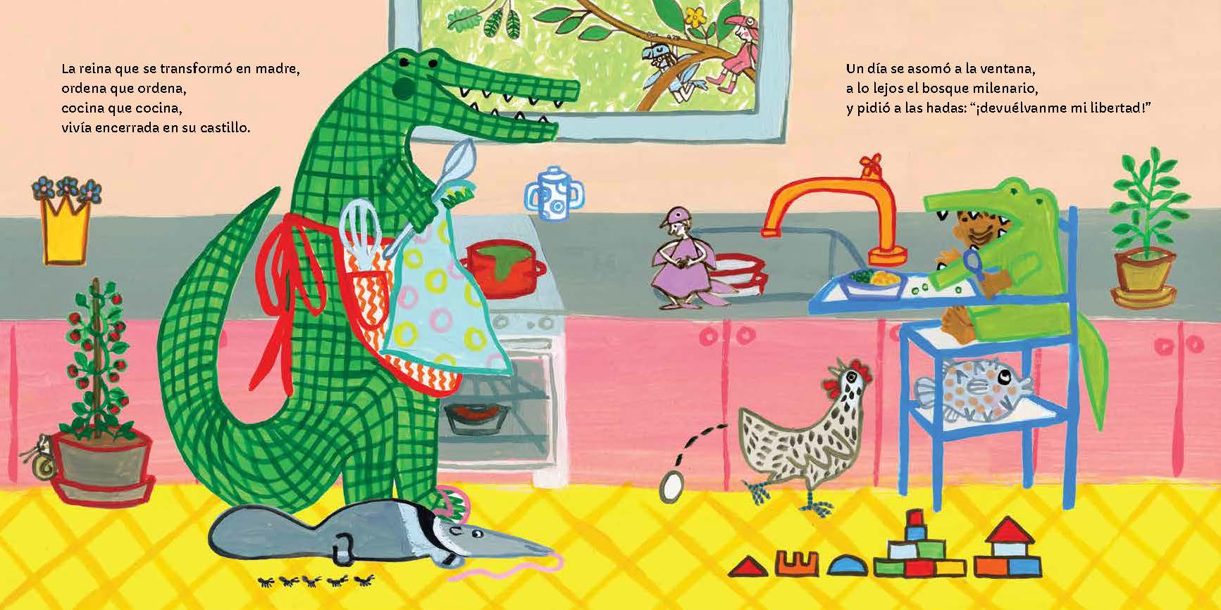 "La reina que se transformó en madre, ordena que ordena, cocina que cocina, vivía encerrada en su castillo."
